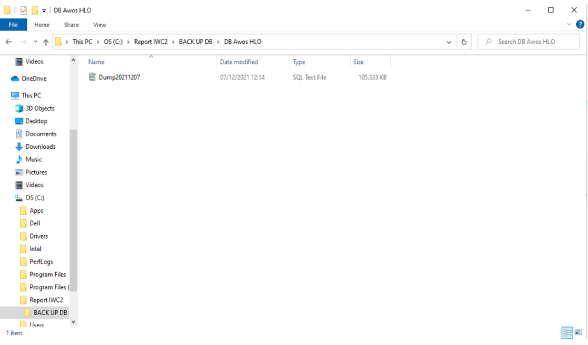 4. Berikut ini adalah gambaran ketika database cadangan sudah bisa disimpan di penyimpanan komputer